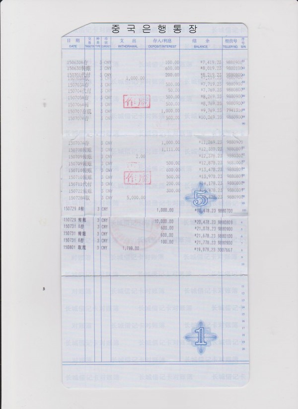 중국은행통장 페지수넘어나서 새통장바꾸었습니다.