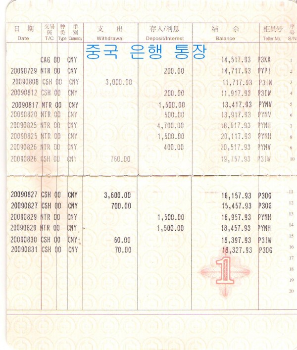 중국지역 제56회 재정보고(2009년08월01일~08월31일까지)