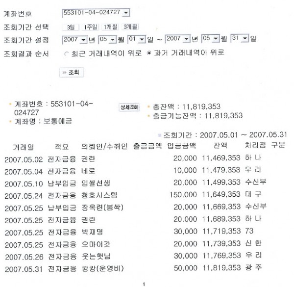 [한국] 제70회 재정보고 2007년 5월 1일부터 31일까지