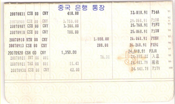 중국지역 제33획 재정보고 (2007년09월01일~09월30일)