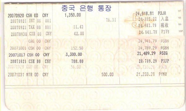 중국지역 제34획 재정보고(2007년10월01일~10월31일)