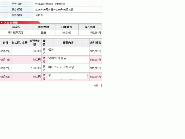 6월 입금 합계 26,000엔