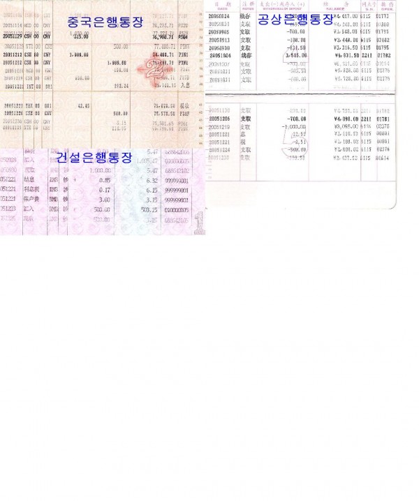 건설은행 구좌 잔액 : 4.04원 12월건설은행장부호구비 : 3.00원