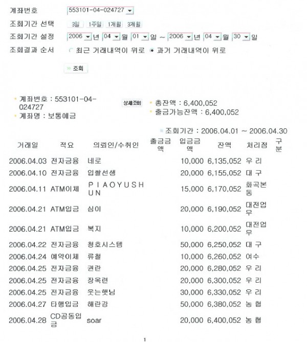 [한국] 제58회 재정보고 2006년 4월 1일부터 30일까지