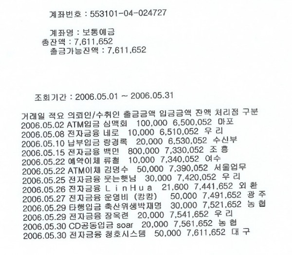 [한국] 제59회 재정보고 2006년 5월 1일부터 31일까지