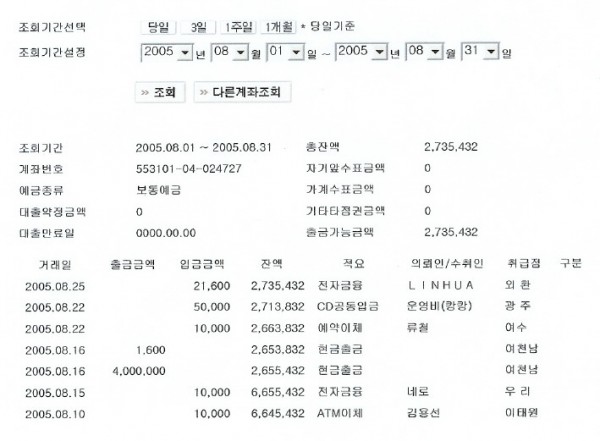 [한국] 제50회 재정보고 2005년 8월 1일부터 31일까지