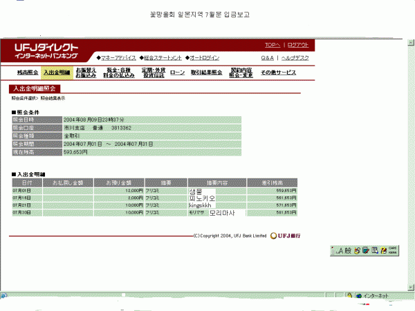 일본지역 제43회 입금보고 (04.7.1-04.7.31)