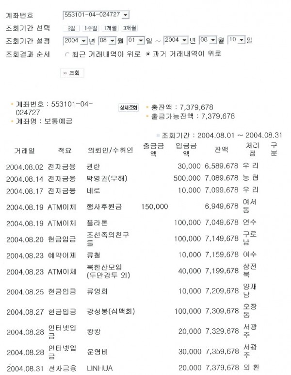 [한국] 제38회 재정보고 2004년 8월 1일부터 8월 31일까지