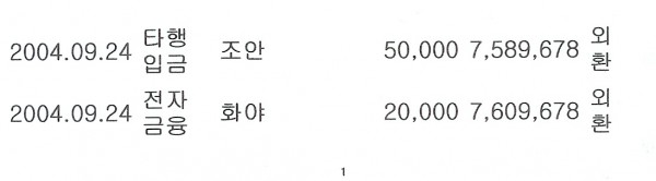 우선 계좌의 입금내용을 스켄처리하는 데 잠시 장애가 있어 먼저 수기로 내용을 올립니다.
