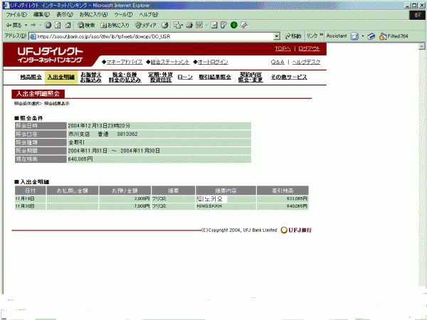 11월30일 잔액 640,065엔