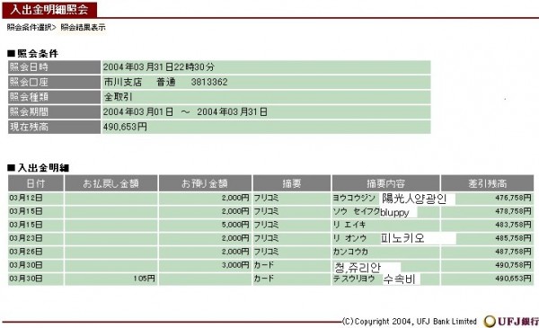일본지역 제39회 입금보고 (2004.3.1-2004.3.31)