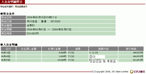 일본지역 제40회 입금보고(2004.4.1-2004.5.7)