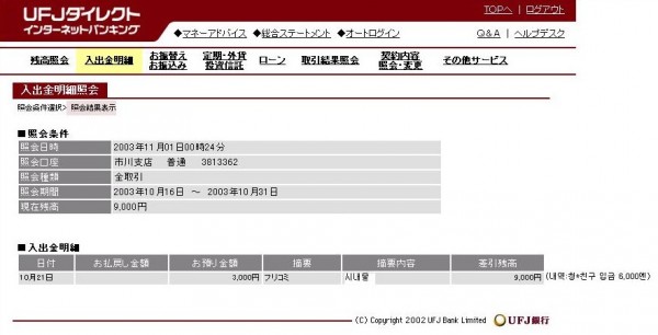 * 계좌를 신청한 UFJ은행에서 온라인업무도 시작한지라 이제부터 일본지역도 온라인조회가 가능하게 되였습니다.첨부파일을 참고해주세요^^
