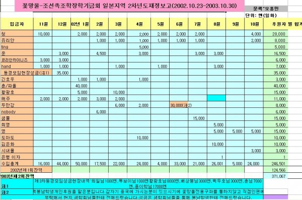 오늘에야  꽃망울회 일본지역 제2차년도 재정보고를 올립니다.