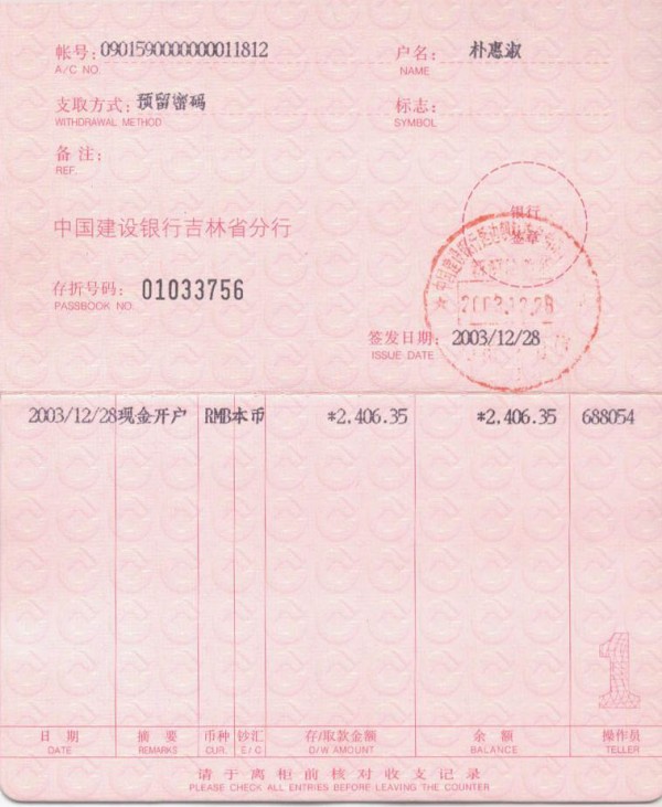 새로운 건설은행통장입니다.