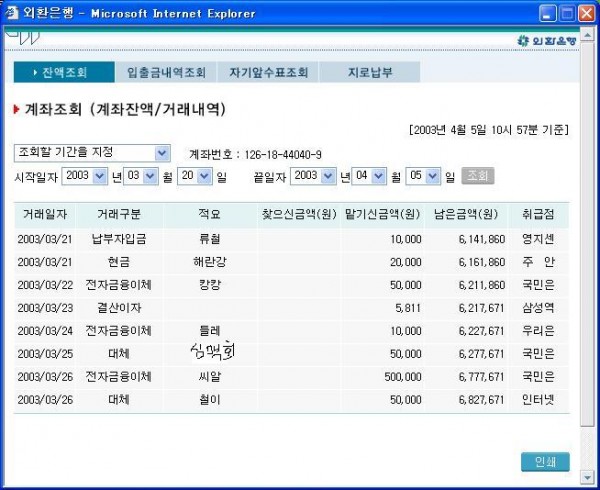 3월20일부터 4월5일까지의 한국지역입금내역을 보고드립니다.