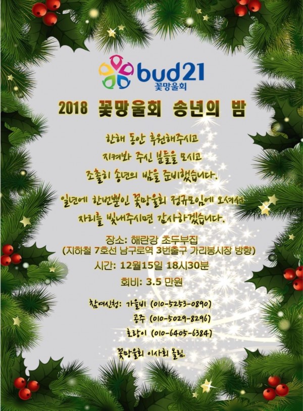 2018년 꽃망울회 송년 모임에 초대합니다.